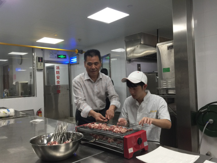 鲁峰院长在认真烤羊肉串