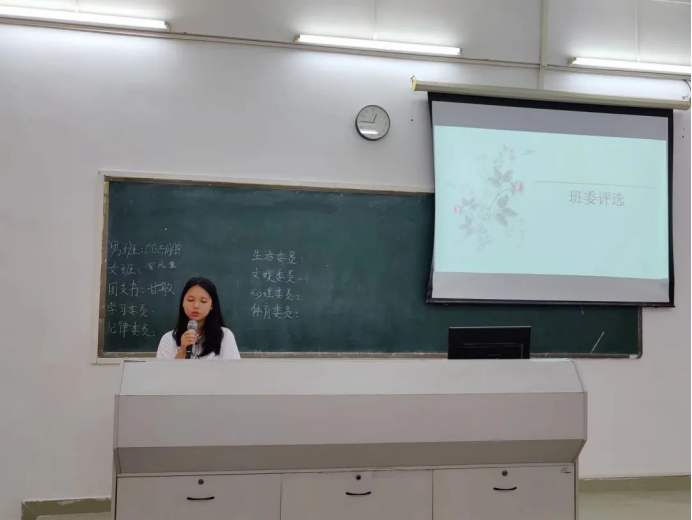 在班会上,各班进行了班委选举。同学们踊跃争先,主动上台展现自身优势,阐述自己对班干部岗位职责的理解与规划,表示自己愿意在大学三年间以积极热情的态度,按照学院工作部署,配合好辅导员、班主任开展班级建设工作,为同学服务、为班级做贡献。