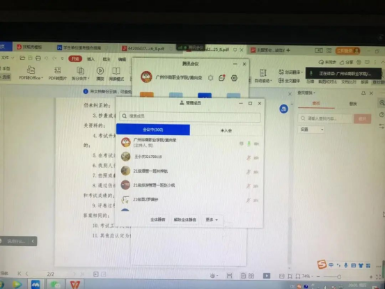 为了使同学们更好的了解线上考试的相关规定,加强学风校风建设,严肃考风考纪,营造良好的诚信考试氛围,酒店管理学院于2022年12月22日19:30在腾讯会议召开2022年秋季学期诚信考试动员会。此次动员会由辅导员黄向荣老师主持,辅导员陈海宁老师以及2021级、2022级全体同学参与。