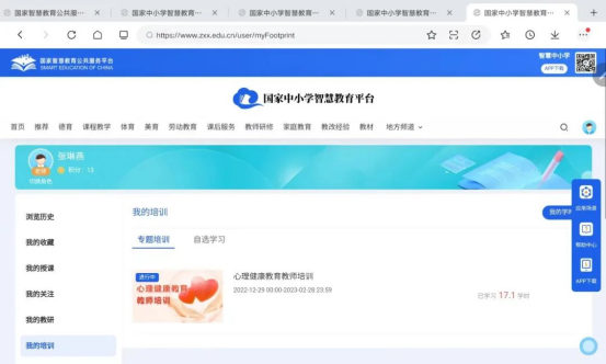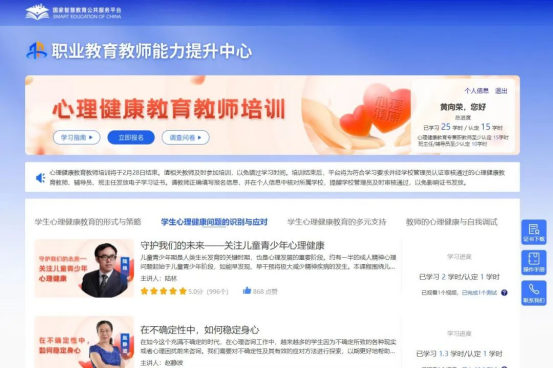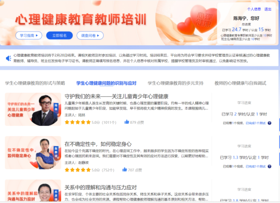 非常荣幸能够通过国家智慧教育公共服务平台,参与心理健康教育教师培训。作为学院的实习辅导员,参与本次培训使我受益良多。通过本次的学习,使我更加深刻的意识到对学生心理教育与辅导的重要性。