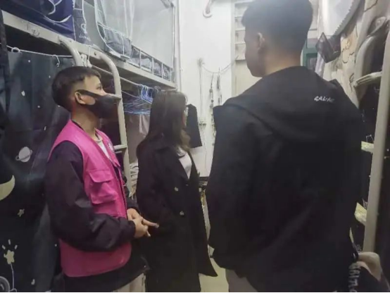 走访过程中,学院领导、老师与同学们亲切交流,特别叮嘱同学们要严格遵守学校宿舍安全管理规定,定期消毒、通风,严禁使用违规电器,配合学校做好管理工作,强调要增强安全意识,防范各类安全隐患。嘱咐同学们不要让“躺平”成为自己停滞不前的借口,要尽早明确新的奋斗目标,规划好大学生涯,培养优良的习惯,有大志向、大格局、大情怀;鼓励学生走出宿舍,多进行体育锻炼、将时间精力多花在学习和提高自身综合素质上,增强自我竞争优势;同学们纷纷表示会严格遵守学校和学院管理规定,做好自我防护,合理有序的安排学习和生活节奏。