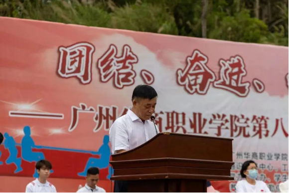 为推动校园体育建设,落实大学生体育发展,培养学生积极向上、乐于锻炼的精神品质,5月6日,广州华商职业学院举行第八届趣味运动会。广东华商教育集团副总裁郭志明、刘文琦,广州华商职业学院校长林琨智、党委书记翁礼成等领导出席了开幕式。