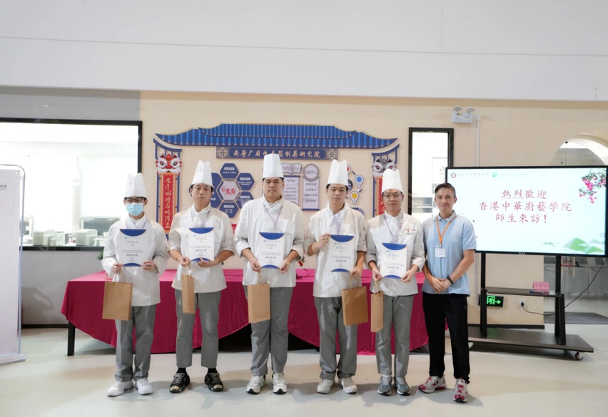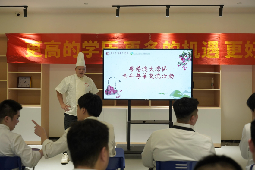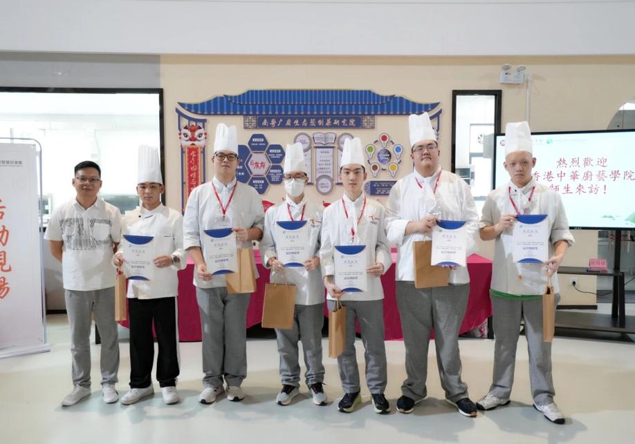 2023年8月1日与8月8日,由粤港澳大湾区青年职业发展促进会(以下简称“青促会”)协助开展的「2023粤港澳大湾区青年粤菜交流活动」于广州华商职业学院顺利举行。本次活动目的在于积极弘扬粤菜传统文化,大力推广粤菜培训以及加强粤港澳大湾区的青少年交流,助力“粤菜师傅”人才培养,为粤港澳大湾区打造烹饪技能人才高地。本次活动共有52名来自香港中华厨艺学院的学生和广州华商职业学院酒店管理学院烹饪工艺与营养专业的学生一同参加,两地同学共同组队制作增城特色菜肴——荔枝芝士虾球,并由活动嘉宾就菜肴进行了点评及为获奖队伍颁发证书和奖品。香港中华厨艺学院总教导员刘志坚、项目主任郑少彬、广州华商职业学院酒店管理学院院长林红梅、青促会常务副秘书长熊子珂等师生代表一行出席了本次活动。