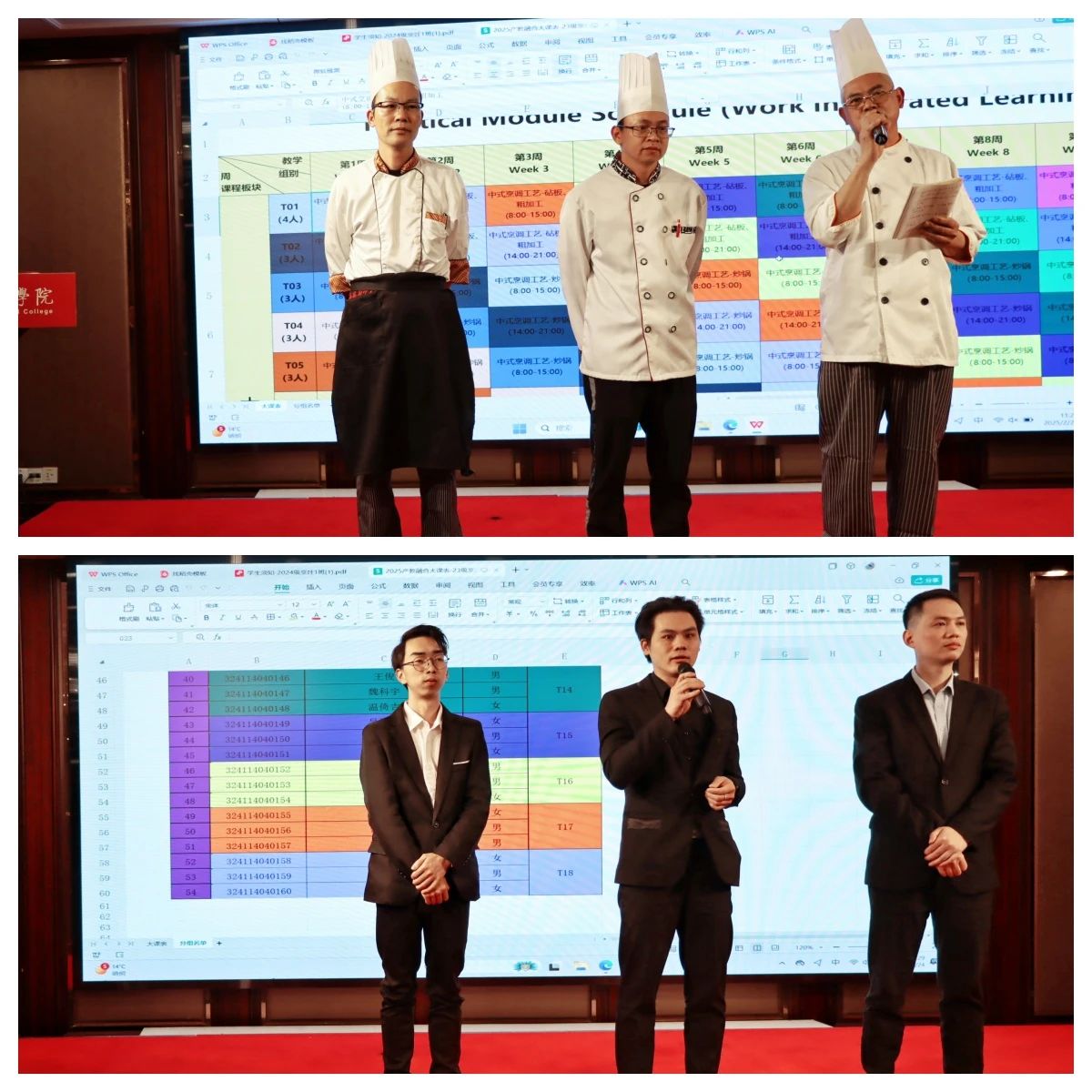 新学期开学第一课教学巡查除了关注校本部的教学情况外,我院领导、老师还重点巡查了在太阳城附属教学酒店开展实践学习的班级情况。酒店管理学院院长林红梅、副院长何洪健、谢锦权以及辅导员、“双岗”教师们与24级烹饪工艺与营养1班全体同学进行了面对面的互动。