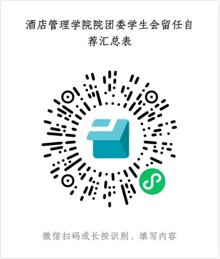 2.下载并填写《酒店管理学院院团委学生会留任自荐表》电子版。