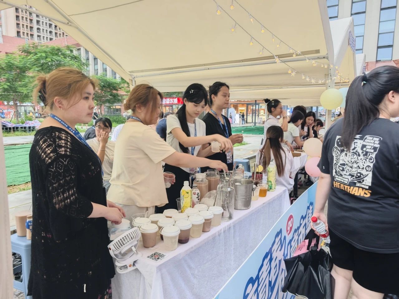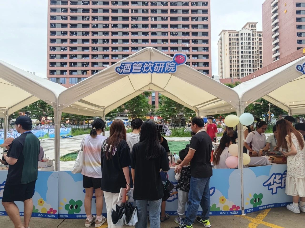 为了丰富校园文化生活,酒店管理学院为同学们搭建专业实践与消费体验的互动平台,创建了酒管饮研院,并于6月20日至21日在广州华商职业学院华科广场参与了主题市集活动。本次活动以"品饮创意·共享生活"为主题,通过提供优质饮品和特色服务,为师生们带来了兼具专业性和趣味性的市集体验。