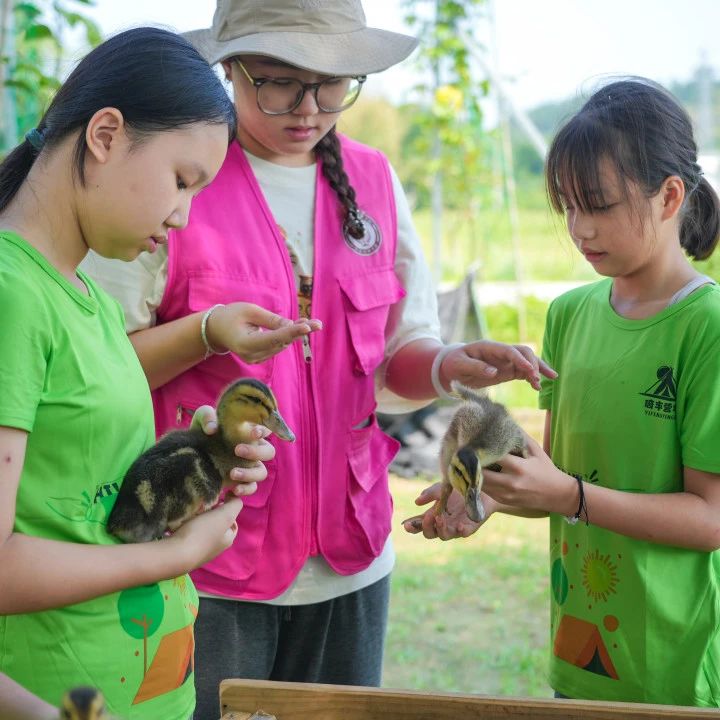 营地的鸭舍和科普园里,生活老师们和孩子们一起给领养的小鸭子喂食、换水,观察小鸭子的成长变化,还会趁机给孩子们讲一些关于小鸭子生活习性的知识。在南瓜苗圃,老师引导孩子们观察南瓜苗的生长,记录下它们的变化,还和孩子们一起捕捉昆虫制作标本,让孩子们在亲近自然的过程中收获知识。