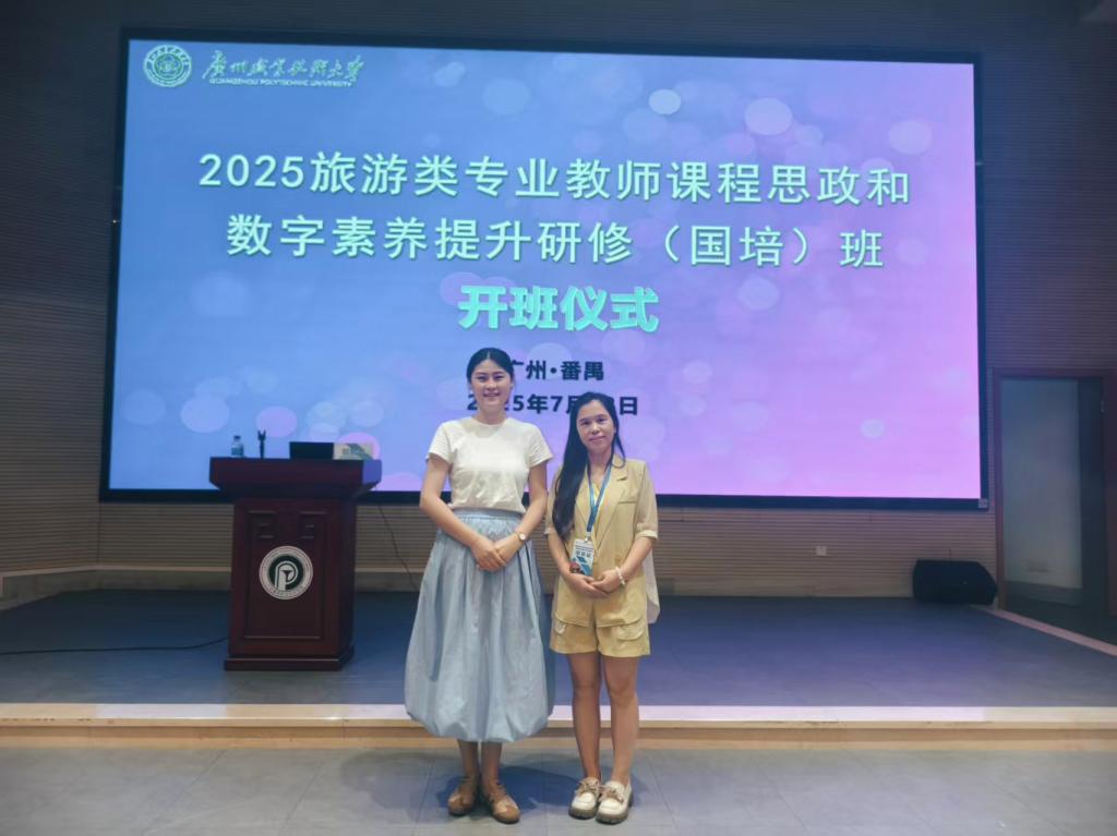 为深入贯彻《广东省“强师工程”实施方案》及职业院校教师素质提高计划相关要求,广州华商职业学院酒店管理学院旅游管理专业负责人方雪、中西面点工艺专业负责人李雁,分别于2025年7月12日至19日、9月15日至21日,参加了由广州番禺职业技术学院承办的国家级师资培训项目——“旅游类专业教师课程思政和数字素养提升研修班”。通过系统学习,两位教师在课程思政实施与数字技术应用方面取得显著收获,期间在中期学习展示环节表现亮眼,充分展现研修成果。