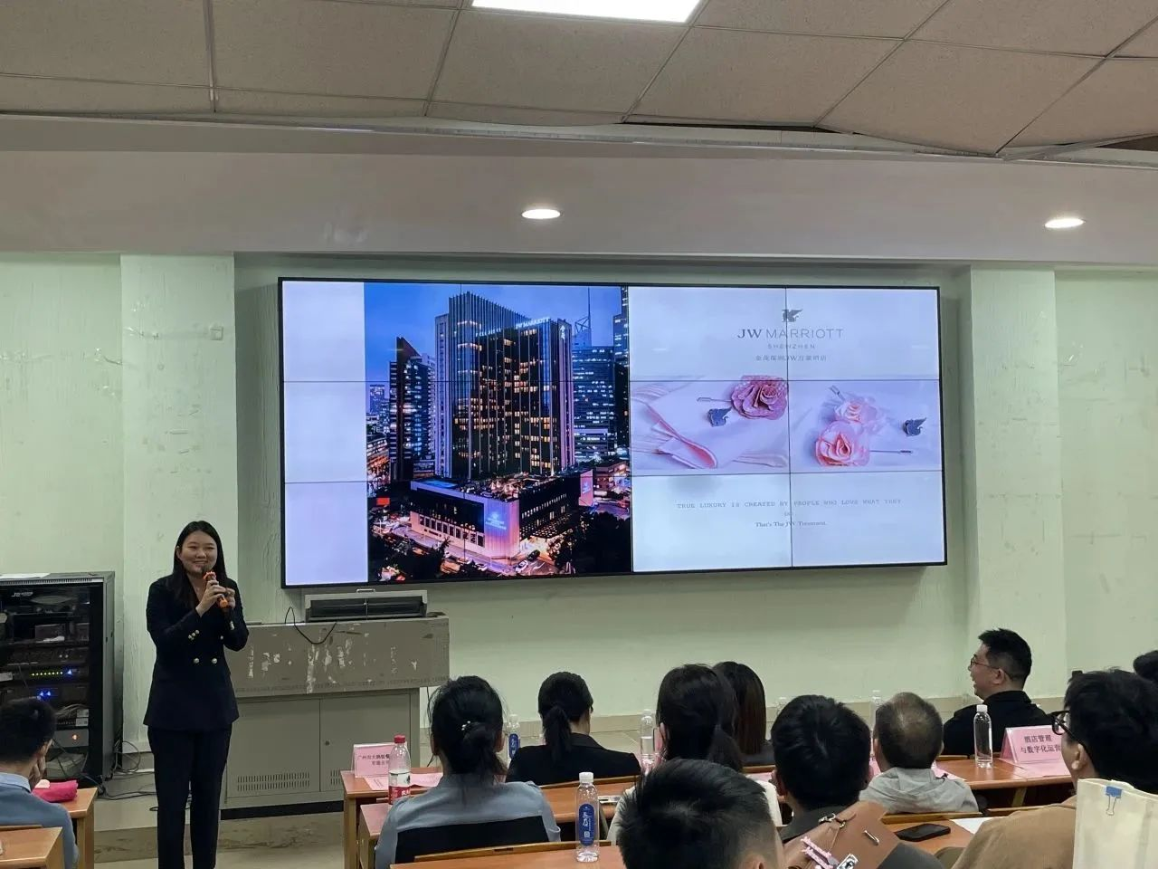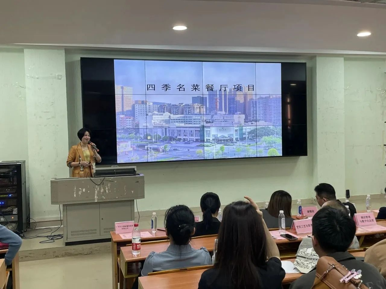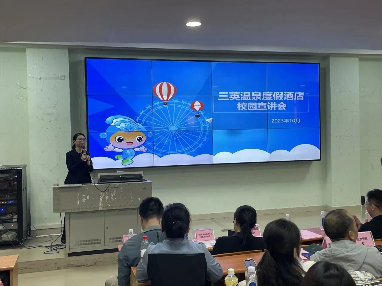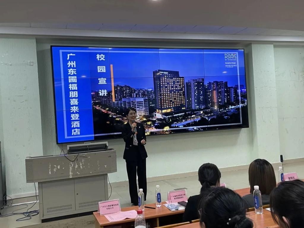莅临我校参加企业招聘宣讲会的12家名优企业分别为:广州市大鸽饭餐饮投资有限公司、广州越秀宾馆希尔顿格芮精选酒店、广州海航威斯汀酒店、广州增城凯悦酒店、广州W酒店、广州东方宾馆、金茂深圳JW万豪酒店、广州市四季名菜餐饮管理有限公司、广州东圃合景福朋喜来登酒店、广州市食尚国味饮食管理有限公司、珠海长隆投资发展有限公司、广州市三英温泉度假酒店。
