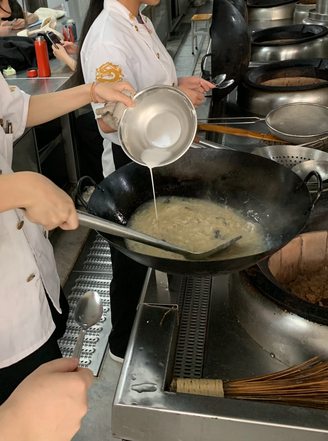 4.将煮好的材料勾芡调色即可。