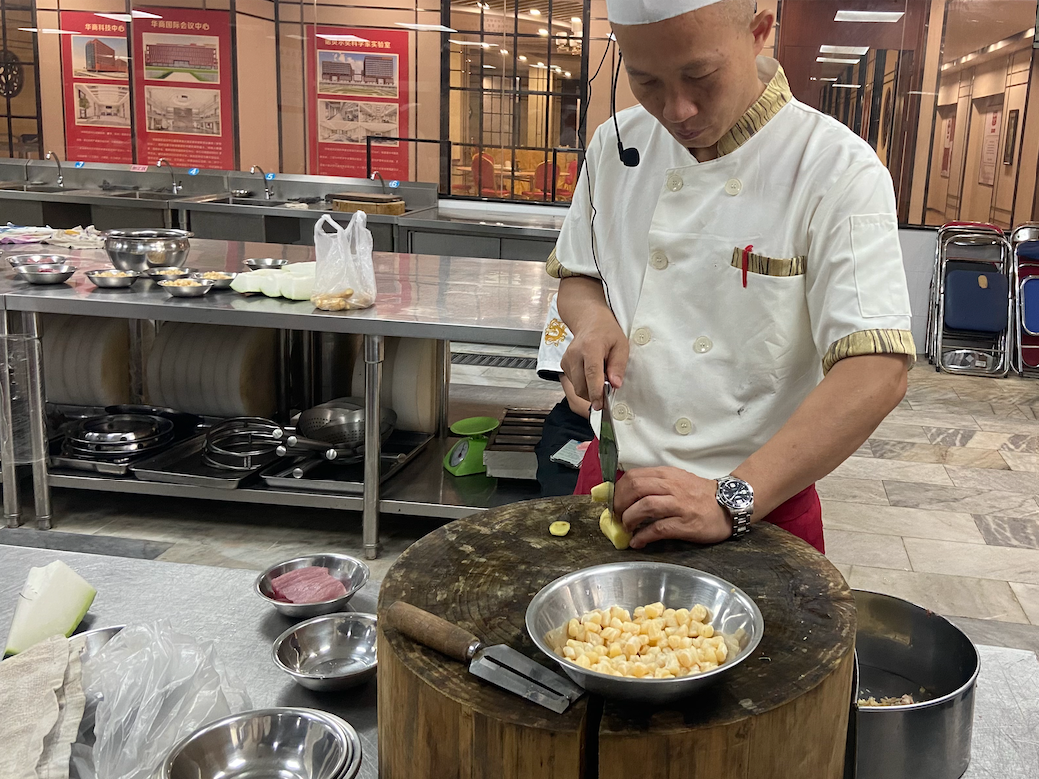 2.将冬瓜、海参丝飞水。