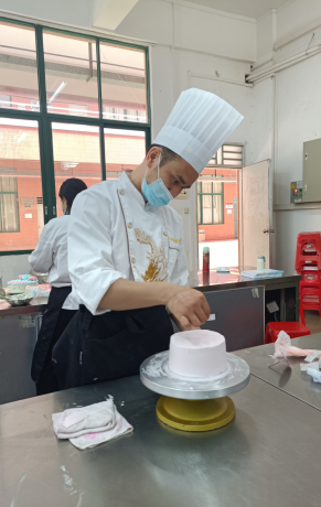 3月14日中西面点一班在老师范国权的带领下开展蛋糕裱花课程,学习如何给蛋糕抹面、使用奶油挤出奶油玫瑰花放在蛋糕上进行装饰以及对蛋糕进行裱花装饰。