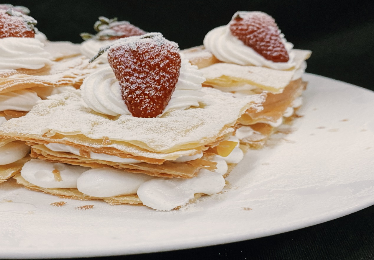 不过它的千层酥皮之间应该夹些什么,那变化可多了。