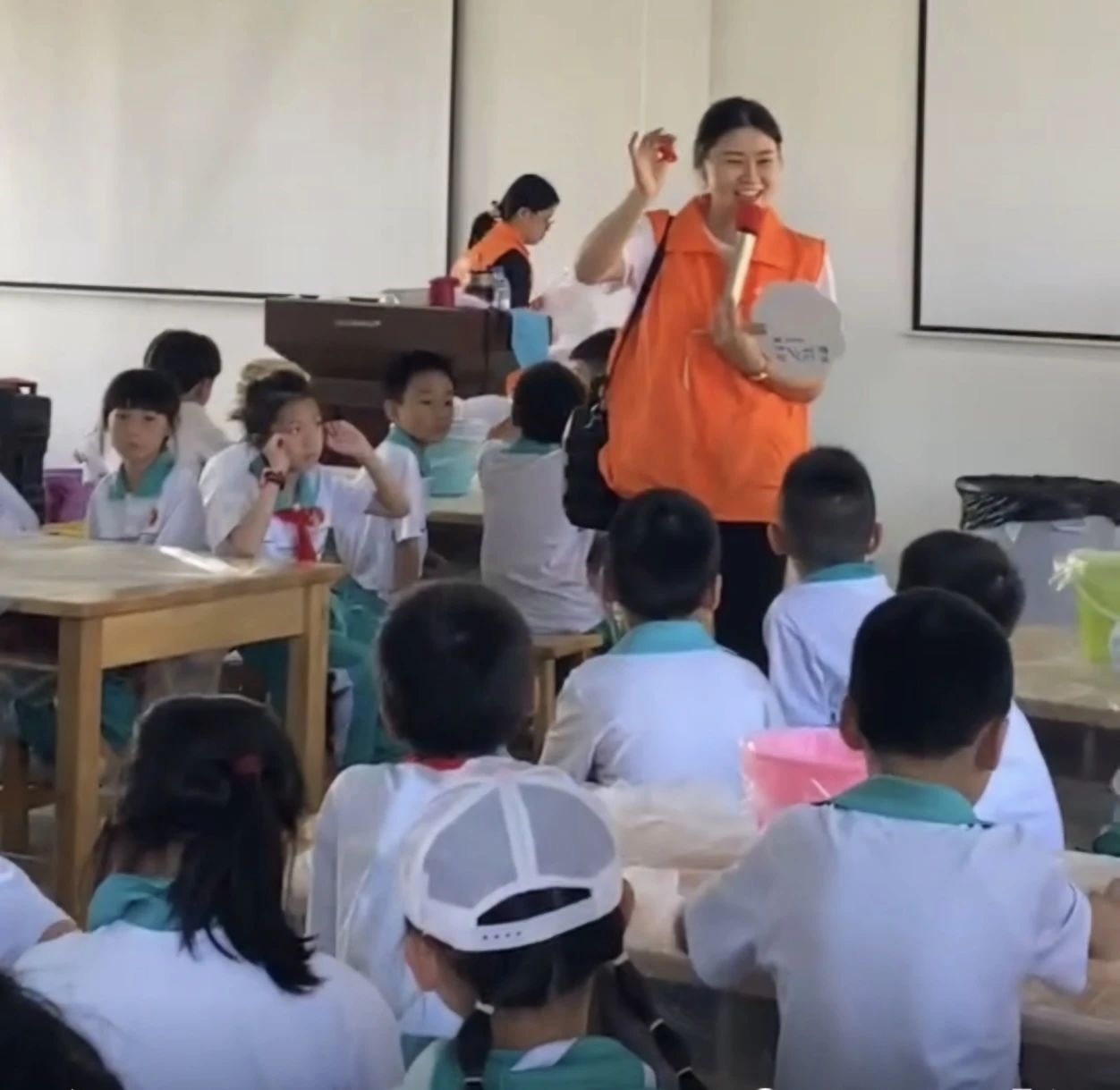 在研学实践环节,学生们深入乡风研学基地,亲身体验乡村文化与旅游资源开发的紧密结合。通过实地考察与调研,旅游管理专业的学生们不仅学习到乡村旅游的规划与管理知识,还深刻感受到乡村振兴背后的文化力量与社会价值。这一实践过程为学生们提供了宝贵的第一手经验,有助于他们将课堂所学理论知识转化为实际操作能力,为未来从事旅游行业奠定坚实基础。下图为学生带团实践过程。