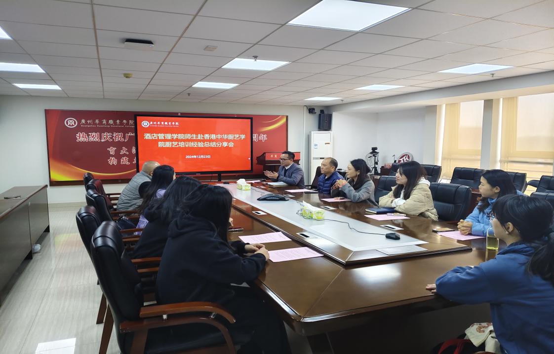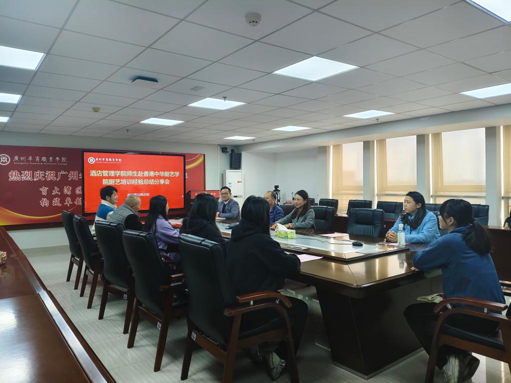 2024年12月23日下午,广州华商职业学院厨艺培训总结经验分享会在行政楼715顺利举行。国际教育学院钱芳院长、江燕副院长、酒店管理学院何洪健副院长以及参与香港厨艺培训的师生齐聚一堂,共同回顾与展望厨艺培训项目的发展。