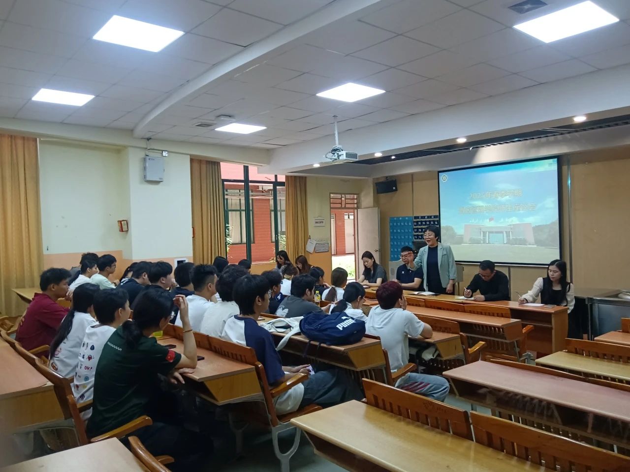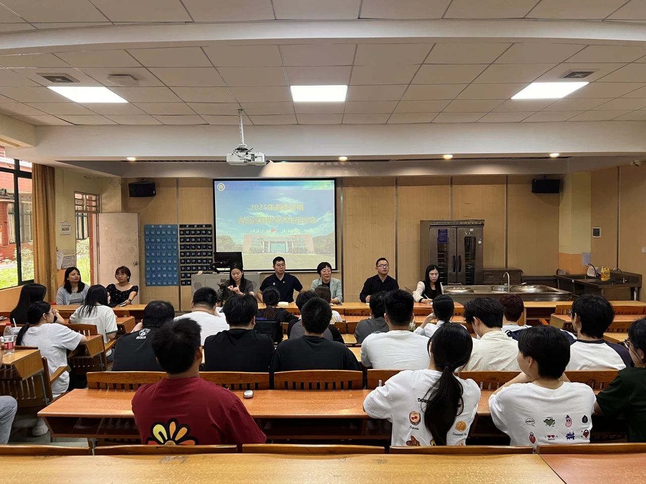 为了进一步加强师生交流,及时了解学生的学习与生活状况,更好地推进本学期各项工作,酒店管理学院于4月28日中午12:30在创教101多媒体教室召开了2025年春季学期期中师生座谈会。本次座谈会由林红梅院长主持,参会人员包括副院长何洪健、党支部副书记谢锦权、各专业教师、辅导员等教师代表,以及2023级和2024级各班级的学生代表。