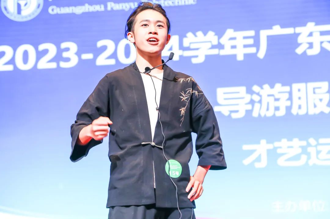 2024年2月27-29日,广东省职业院校技能大赛“导游服务赛项”在番禺举行,来自广东省57所高职院校的111位选手参加了此次竞赛。经过导游综合知识测试、抽选景点导游讲解、自选景点导游讲解、英语口语测试、才艺展示等五个环节的激烈角逐,酒店管理学院由方雪老师领队,周期、林琳老师指导的22级旅游管理一班罗家骏同学获得省赛三等奖