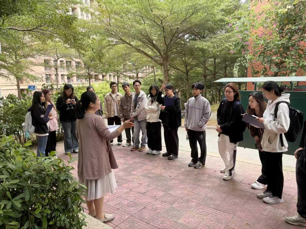 实践当天上午,各组从东区集合出发,前往负责区域开展模拟接待与讲解。讲解现场,同学们化身专业导览员,以饱满的热情、流畅的表达介绍校园亮点。