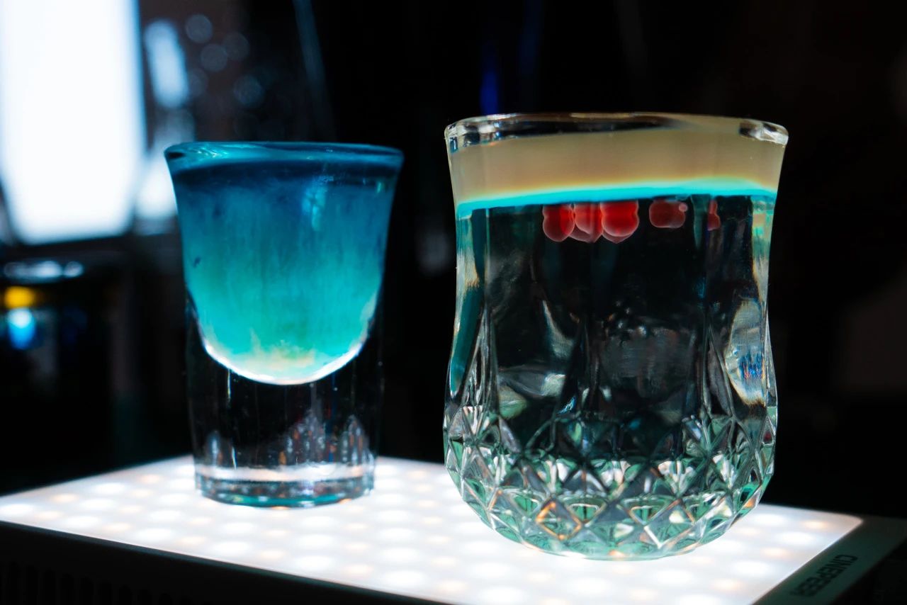 调酒展示时,同学们依调和、摇和、搅和法,备好多款酒水原料。依现场师生所选,精准操作,手法娴熟,片刻间,一杯杯诱人酒品便呈于眼前。