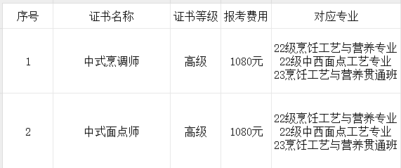 为进一步推动“1+X”证书制度,现将2024年上半年高级中式烹调师、高级中式面点师(发证单位:广东华商技工学校)考试相关事宜通知如下,请各位同学根据各职业资格证书的要求做好报考工作: