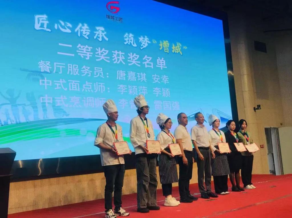 经过激烈角逐,学院学子在强手如林的竞赛中脱颖而出:中式烹调师项目中,23烹饪工艺与营养1班李曾文获二等奖,24烹饪工艺与营养1班陈炫光、24烹饪工艺与营养2班梁浩燃获优秀奖;中式面点师项目中,24中西面点工艺2班叶东霖、24烹饪工艺与营养2班黄冬怡、冯小川、冯志濠均获优秀奖。