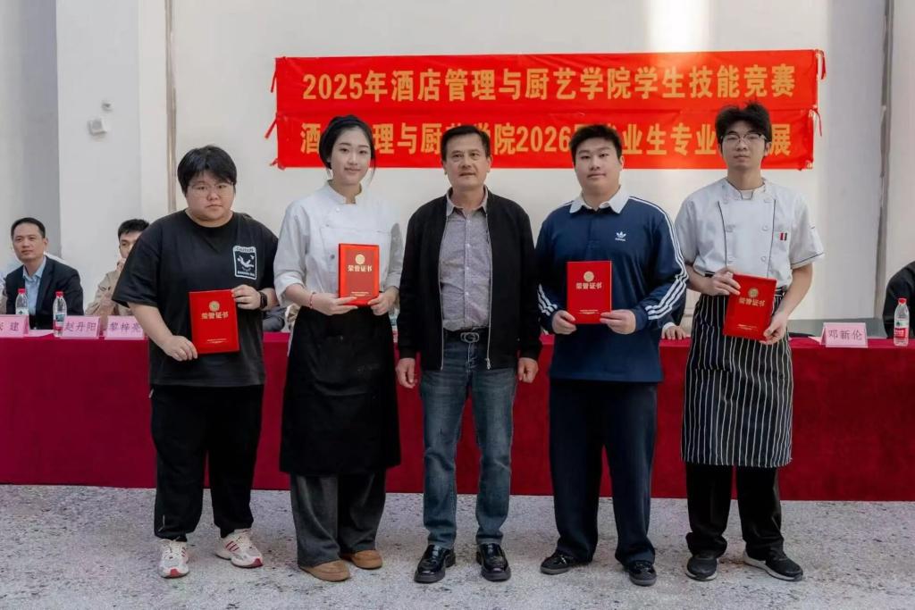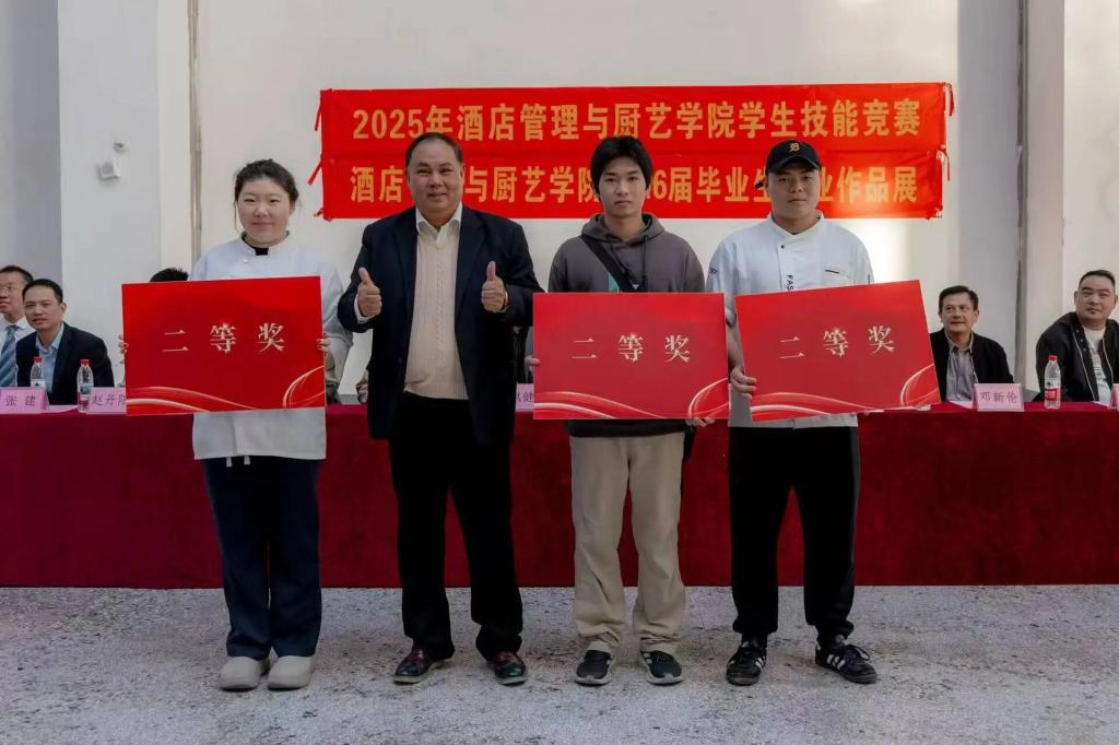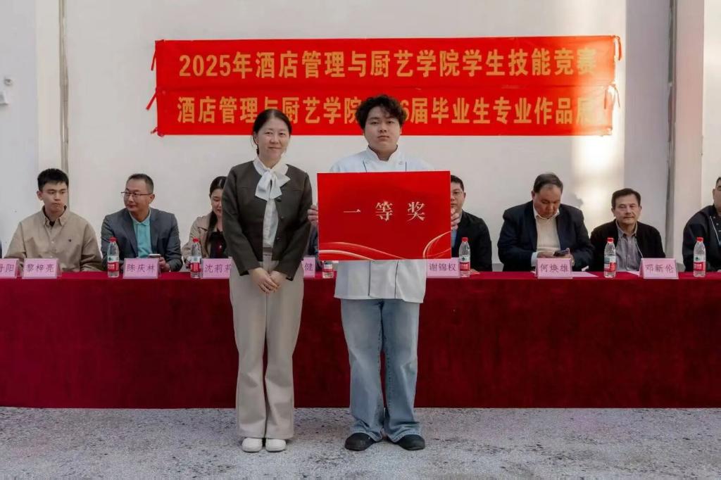 2025年酒店管理与厨艺学院学生技能竞赛暨2026届毕业生专业作品展圆满开展,既有力锤炼了学生的组织协调能力,也充分展现出学子扎实的专业素养与卓越的创新意识。同时,大赛直观呈现学院教育教学改革的显著成效,依托“以赛促教、以赛促学”的育人模式,为毕业生搭建起优质的职业技能交流与展示舞台。后续,学院将持续深化教育教学改革,创新教学与实践路径,为学生搭建更多成长平台,助力大家提升综合能力、展现自我风采。愿同学们在今后的学业与职业道路上,坚守创新初心,深化学用融合,扎实深耕专业领域,为酒店管理与厨艺行业的高质量发展注入更多青春力量。