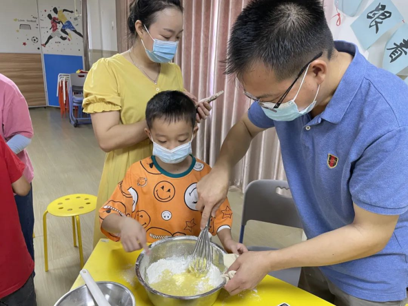 从材料选择、配方比例、烘烤火候和时间等知识讲解,到亲自动手制作,亲子共同协助制作了蔓越莓马芬蛋糕和奶油蛋挞。品尝到亲手制作的面点美食,家长和孩子们脸上乐开了花,不少孩子们更是提出将把制作好的蛋糕和蛋挞分享给家人。