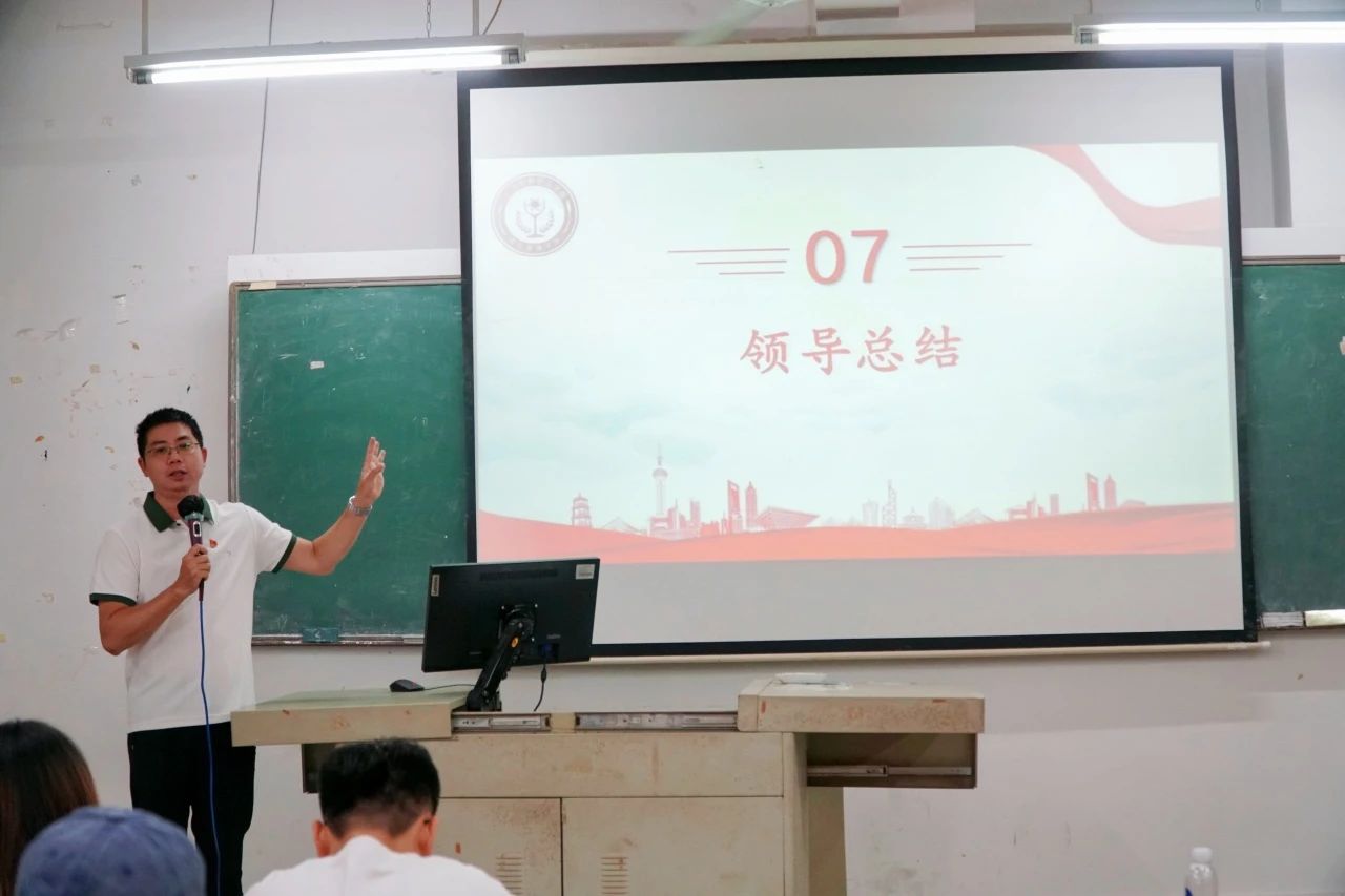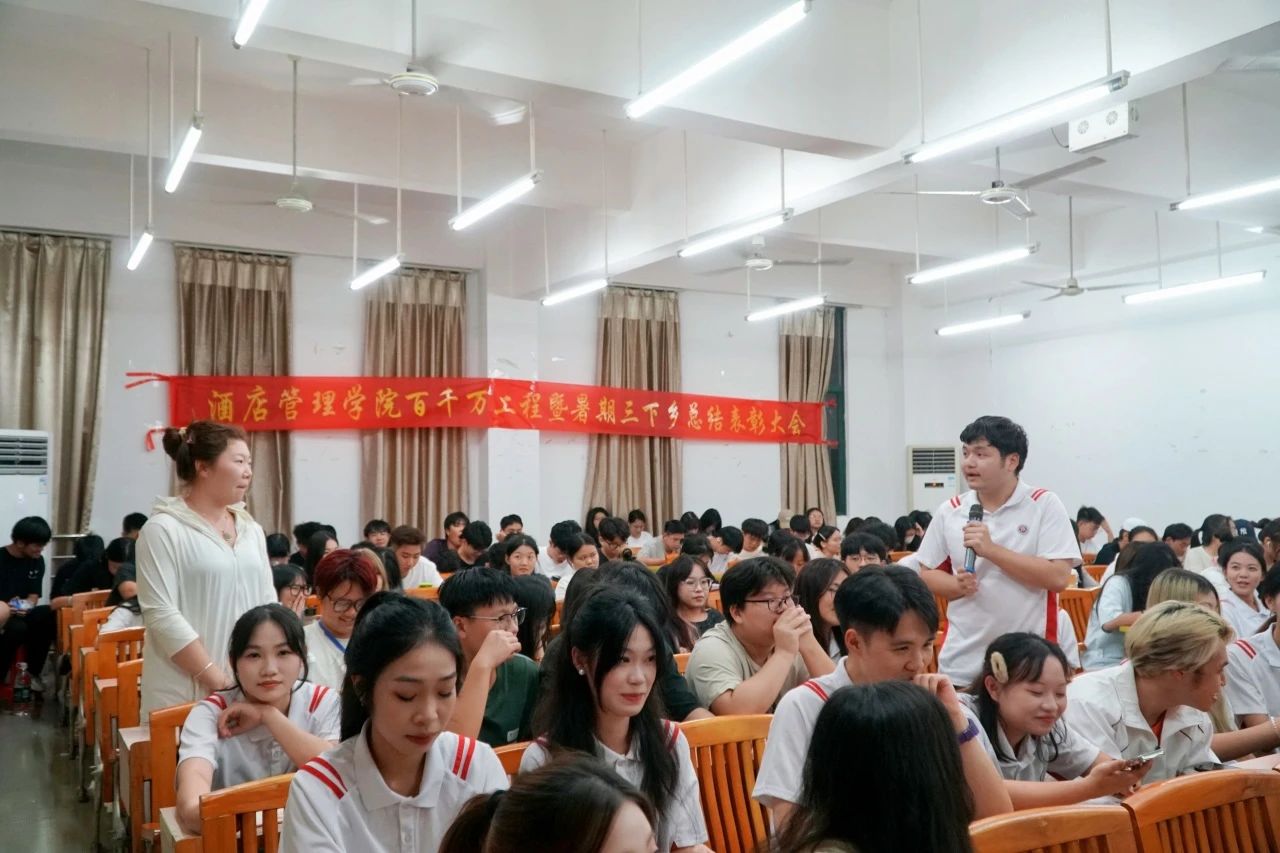 大会最后,谢锦权副院长总结发言。他肯定了志愿者们下乡实践的优秀表现,认为大家能以饱满的热情和高度的责任感投身到“百千万工程”突击队行动暨暑期“三下乡”社会实践中,是一次展示华职学子青春风采以及展示我们酒店管理学院专业特色与学科优势的青春实践。他号召更多的酒管学子在未来的日子里,以先进为榜样,认真学习积极实践,青春为中国式现代化建设挺膺担当。
