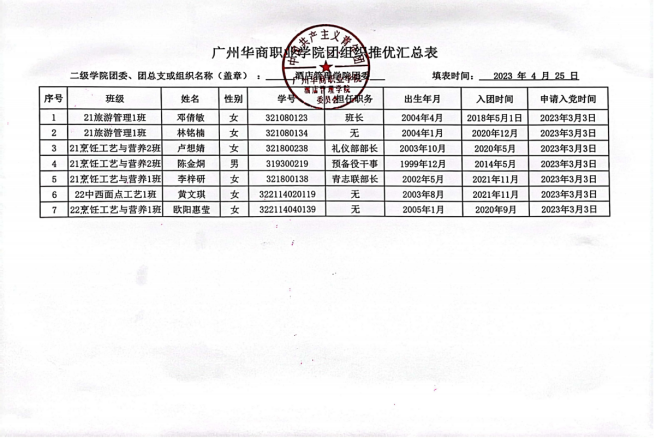 广州华商职业学院酒店管理学院团推优公示名单