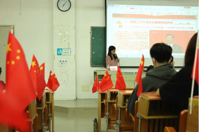 在讲座中,潘京萍主任从七个方面向大家深入地解读了党的二十大精神:党的二十大会议主题和核心内容,过去五年的工作和新时代十年的伟大变革,党的二十大召开的国际国内背景,党的二十大报告的新观点、新论断、新思想,党的二十大为中国制订了宏伟蓝图和行动纲领,党的二十大对青年提出使命要求,培养担当民族复兴大任的时代新人。