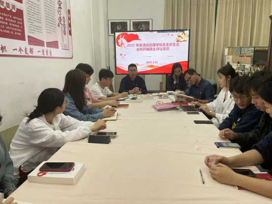 按照《中共广州华商职业学院委员会关于召开 2022 年度基层党支部组织生活会和开展民主评议党员的通知》工作要求,3月23日下午,酒店管理学院党支部召开了 2022 年度组织生活会和开展民主评议。支部全体师生党员参加了会议,党支部书记谢锦权主持了会议。