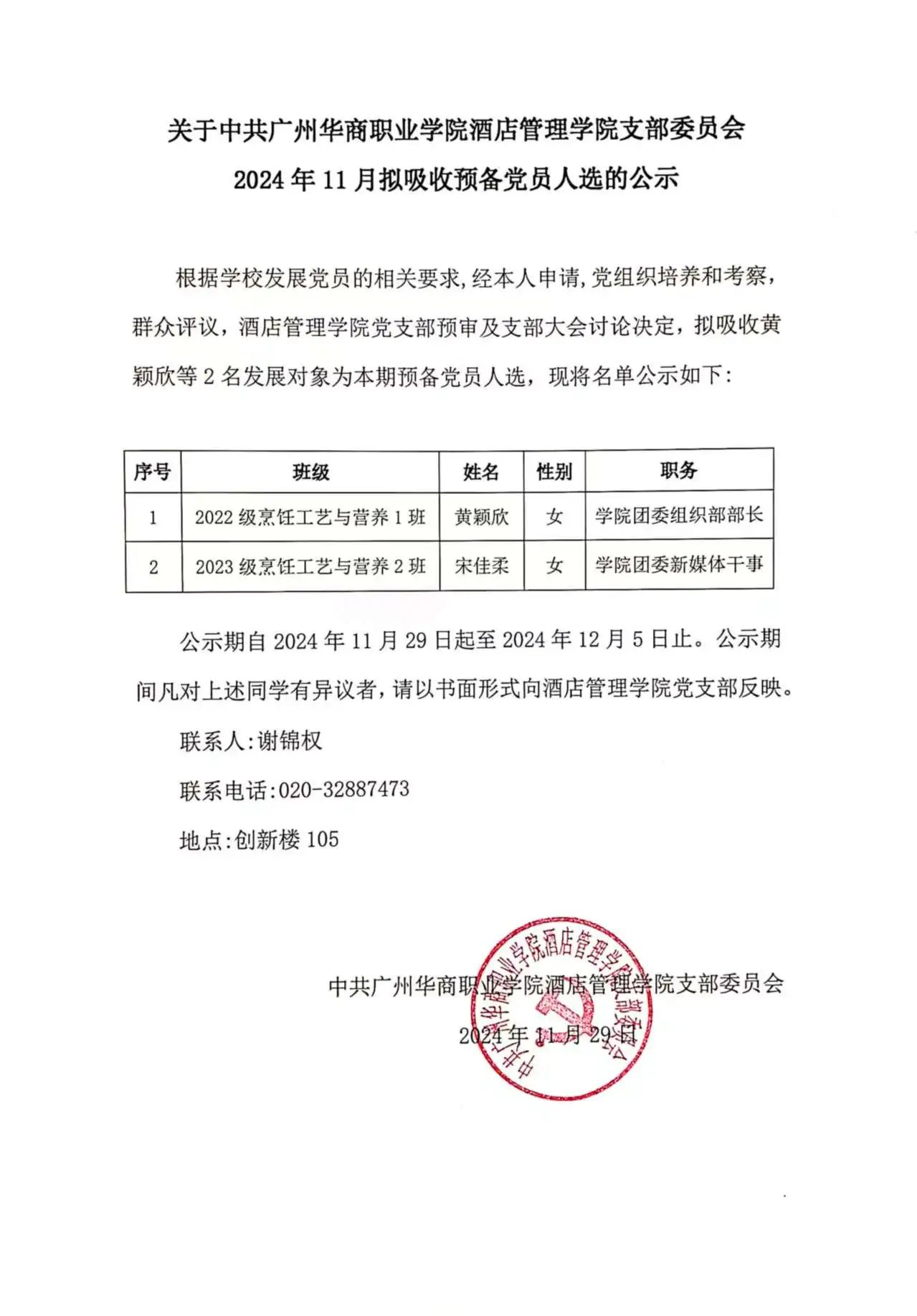 拟吸收预备党员人选的公示