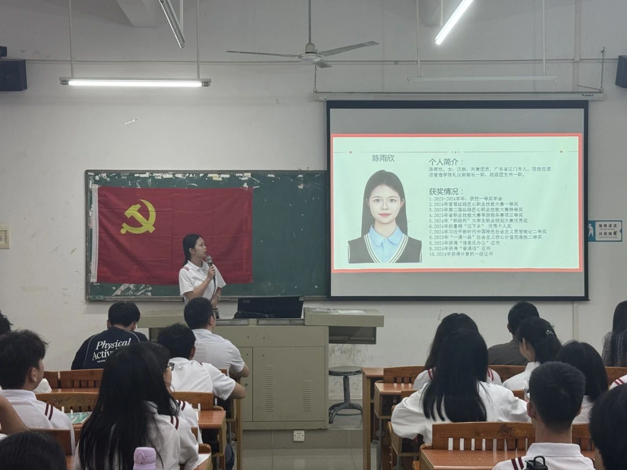接下来,大会进入了发展对象通表环节。党支部两名发展对象陈雨欣同志和罗丽儒同志依次上台汇报。她们从思想、学习、生活、工作实践及志愿服务等方面,详细汇报了自己的成长与进步:通过理论学习与实践活动深化对党的认识,以优异成绩展现专业素养,积极参与学生工作锻炼能力,投身志愿服务传递正能量。