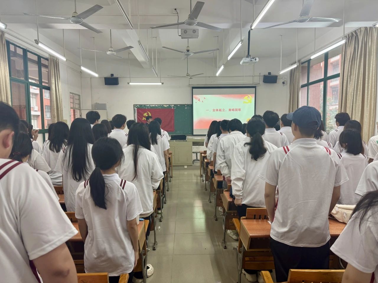 支部党员大会在庄严的国歌声中拉开序幕。