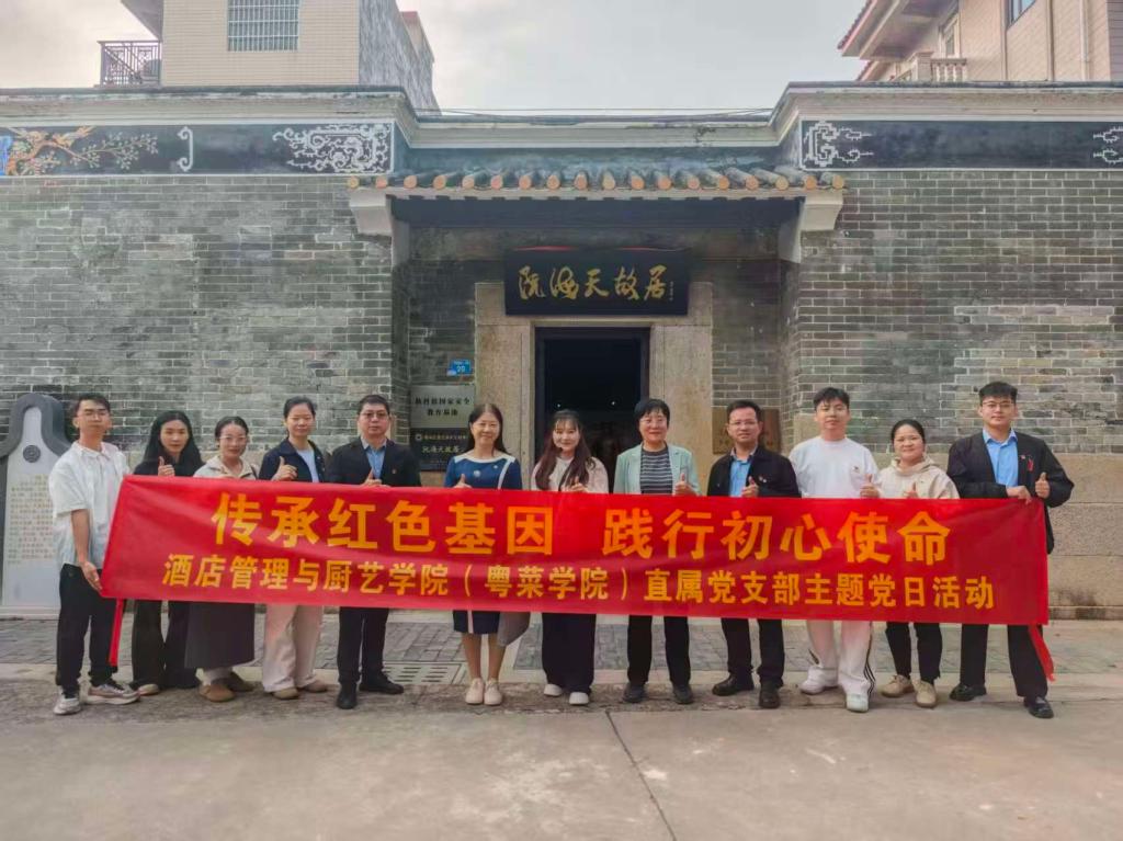 为深化爱国主义教育,传承红色基因,筑牢党员思想根基,酒店管理与厨艺学院(粤菜学院)直属党支部于12月12日下午,组织全体教师党员赴仙村阮海天故居开展实地研学,并集体观看爱国主义电影,让红色教育在实景体验与光影熏陶中入脑入心。