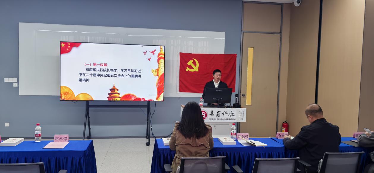 会议伊始,酒店管理与厨艺学院执行院长邓应华教授带领全体与会人员开展第一议题学习,深入领会习近平总书记在二十届中央纪委五次全会上的重要讲话精神。学习聚焦全面从严治党、党的自我革命与职业教育高质量发展核心要义,邓应华结合学院实际强调,要将发展规划深度融入国家“十五五”规划布局,紧密对接第二轮“双高计划”中“办学能力高水平、产教融合高质量”的核心要求,构建“优质校企合作—高质量实习就业—招生提质与声誉提升”的良性闭环,通过产教融合实体化实践反哺学院核心竞争力;要严守中央八项规定精神,加强师德师风建设,营造风清气正的政治生态和育人环境;要深刻领悟“两个确立”的决定性意义,以党的全面领导引领学院高质量发展。