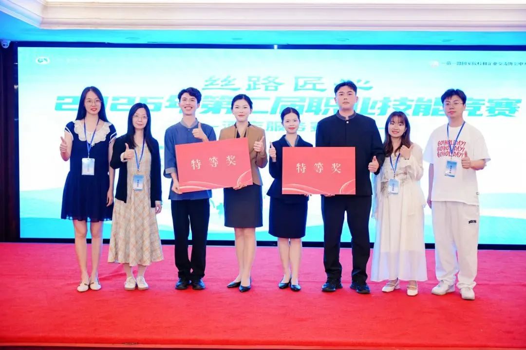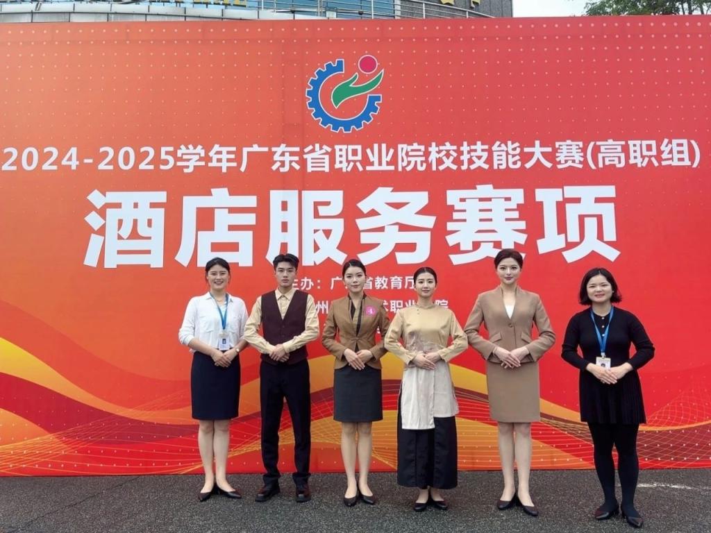 2025年4月23日,第二届“丝路匠心”职业技能大赛酒店服务赛项,广州华商职业学院酒店管理学院两支参赛队伍(选手:陈嘉仪、邱俊钦、陈雨欣、刘蔚峰)均荣获特等奖。