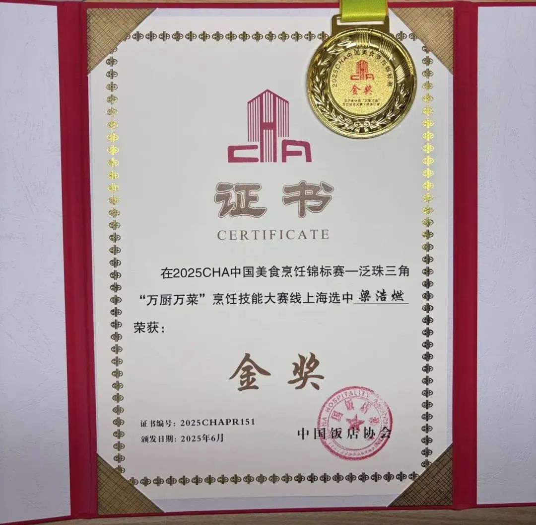 2025年6月,广州华商职业学院酒店管理学院附属教学酒店·太阳城大酒店的西式烹饪教师王杰文凭借精湛的技艺和出色的创新能力,一举斩获金奖。CHA中国美食烹饪锦标赛—泛珠三角“万厨万菜”烹饪技能大赛网络海选中,酒店管理学院2024级烹饪工艺与营养专业的梁浩燃同学凭借其精心制作的菜品“牡丹花”,从众多选手中脱颖而出,一举斩获金奖,并成功入围线下总决赛,为学院烹饪工艺与营养专业再添荣耀。