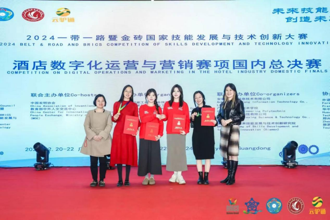 2024年12月22日,广州华商职业学院酒店管理学院师生团队于广东工程职业技术学院参与2024一带一路暨金砖国家技能发展与技术创新大赛酒店数字化运营与营销赛项国内总决赛,教师组荣获三等奖学生组荣获优秀奖。