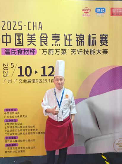 2025年5月10日-12日,24级烹饪工艺与营养贯通班学生施茂杰作为助手全程参与徐斌老师的本次大赛备赛及现场协作,助力徐斌老师斩获银奖!