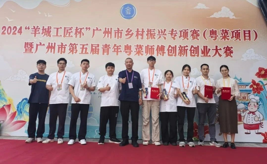 2024年9月“羊城工匠杯”广州市乡村振兴专项赛(粤菜项目)暨广州市第五届青年粤菜师傅创新创业大赛圆满落幕。我校学生在中式面点(学生组)和中式烹调(学生组)项目中表现出色,获二等奖2个、三等奖1个及优胜奖1个。我校刘瑾瑾、范国权、陈雄奔三位老师获“优秀教练员”称号。