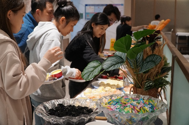 学生们的创新实践成果已在市场中崭露头角:小张团队设计的“桂花酒酿慕斯”借鉴非遗技艺,采用低脂奶酪制作,不仅荣获行业技能大赛银奖,更成为弘美餐厅的“隐藏菜单”;小李团队研发的“火龙果欧包”以新鲜火龙果汁调色,搭配全麦基底,因“健康颜值双高”成为客人拍照打卡的热门单品;还有造型憨态可掬的猪仔包、爆浆流心的流沙包,常常刚送抵餐厅就被点单。“以前上课只想着‘做对’,现在会主动思考‘客人喜欢什么’,这种转变特别有成就感。”小张说。
