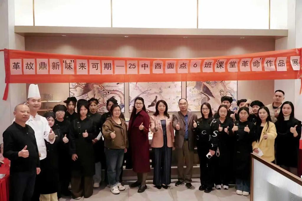 此次作品展的圆满举办,不仅是学校深化“课堂革命”、推进教学改革的生动缩影,更见证了25级中西面点工艺6班的亮眼成长。作为“课堂革命”的鲜活实践成果,学子们从初入学时的零基础小白,稳步成长为如今能独立完成创意西点主题展台的专业学习者,这份蜕变正是“课堂革命”育人成效的有力印证。未来,学院将继续以“揭榜挂帅”等创新模式为抓手,优化育人体系,助力高技能人才培养提质增效。
