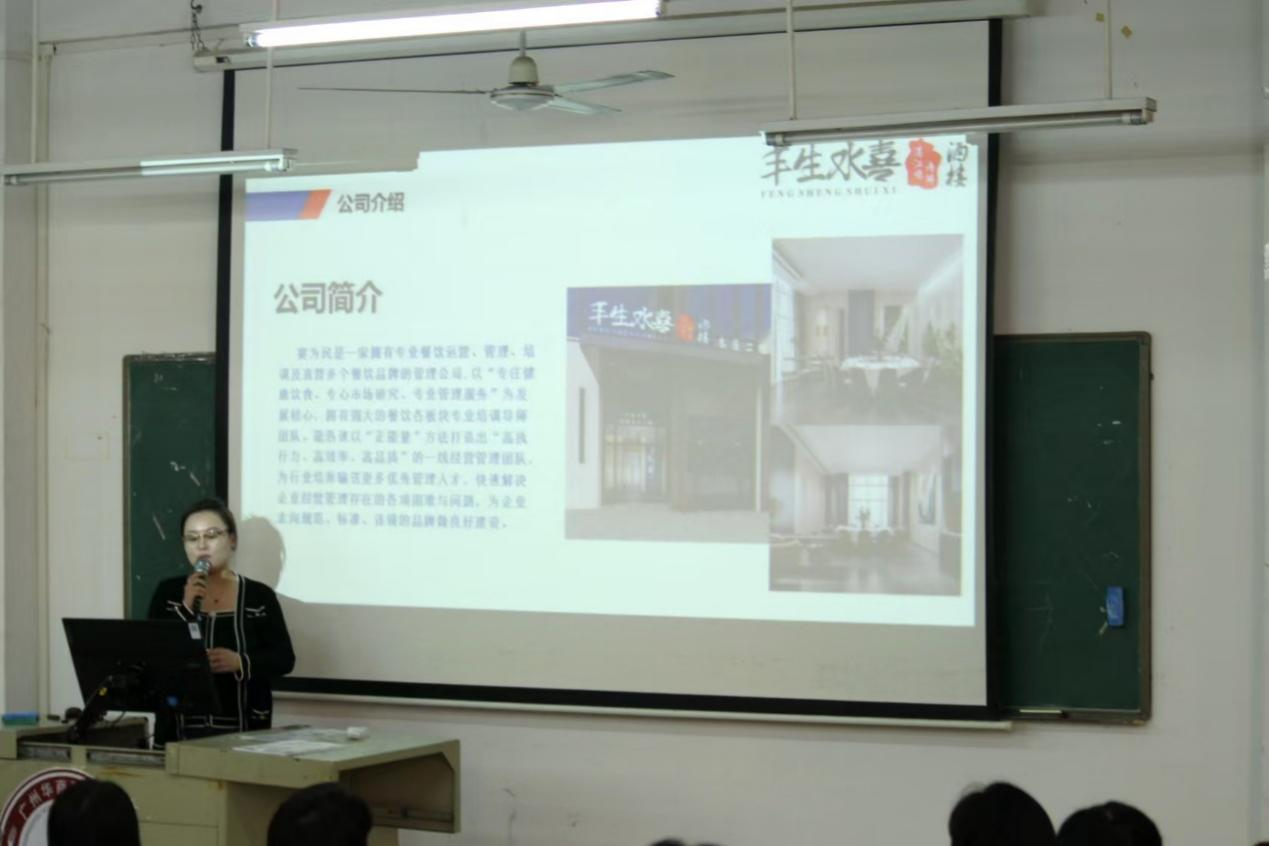 莅临我校参加本次企业宣传讲会的10家知名企业分别是:广州市食尚国味饮食管理有限公司、广州W酒店、广州市合景创展酒店有限公司东圃福朋喜来登酒店、广东粤海天河城集团股份有限公司酒店分公司、广州皇朝御莞酒店有限公司、广东鲍师傅餐饮有限公司、深圳老碗会餐饮有限责任公司、广州黄埔君澜酒店有限公司、深圳世纪国香茶业有限公司、佛山宴为民餐饮服务管理有限公司。
