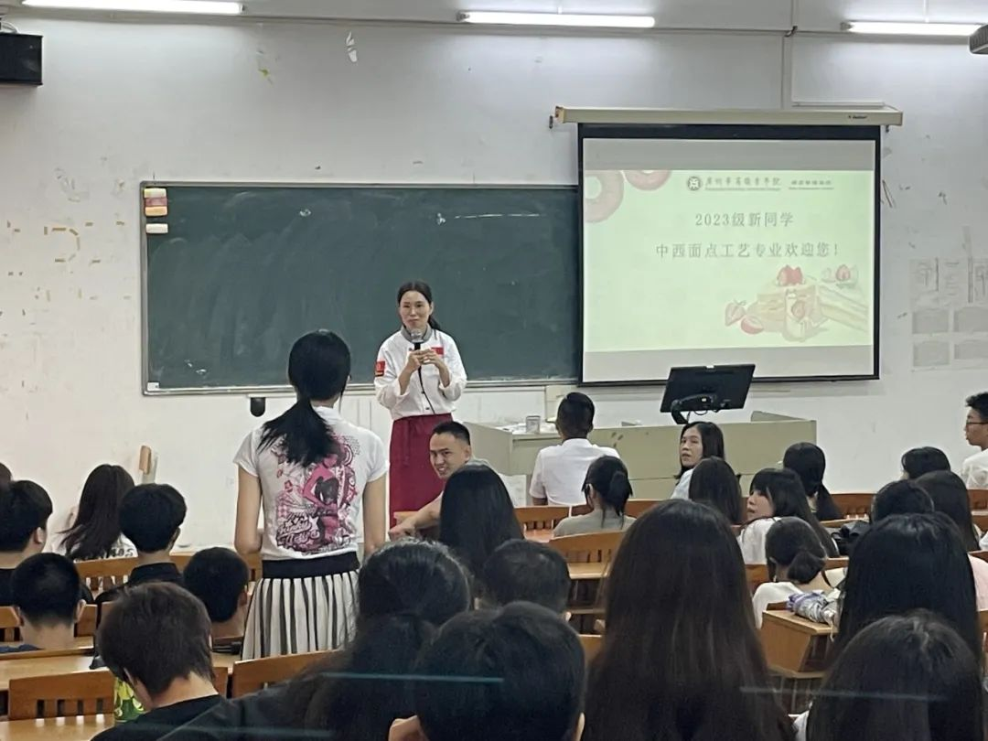 为帮助新生全面了解专业概况,找到专业兴趣、明确发展方向。2023年9月6日中午12点30分酒店管理学院召集全体2023届新生在创教楼分开开展专业介绍会。专业介绍01中西面点...